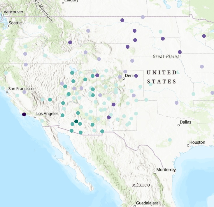 This created a standard deviation map of the stations showing a geographic relationship for stations that have high vs low variability between them, however, I would have liked to have a more even distribution of station locations to truly make a prediction based on this analysis.
